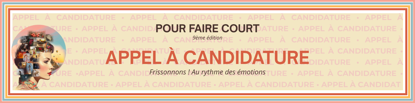 Pour sa 9ème édition qui aura lieu en avril 2026, le Festival Pour Faire Court est ravi de vous inviter à soumettre vos œuvres à l’occasion d’un événement dédié à la célébration de l’art du court métrage autour de la thématique “Frissonnons ! Au rythme des émotions”.